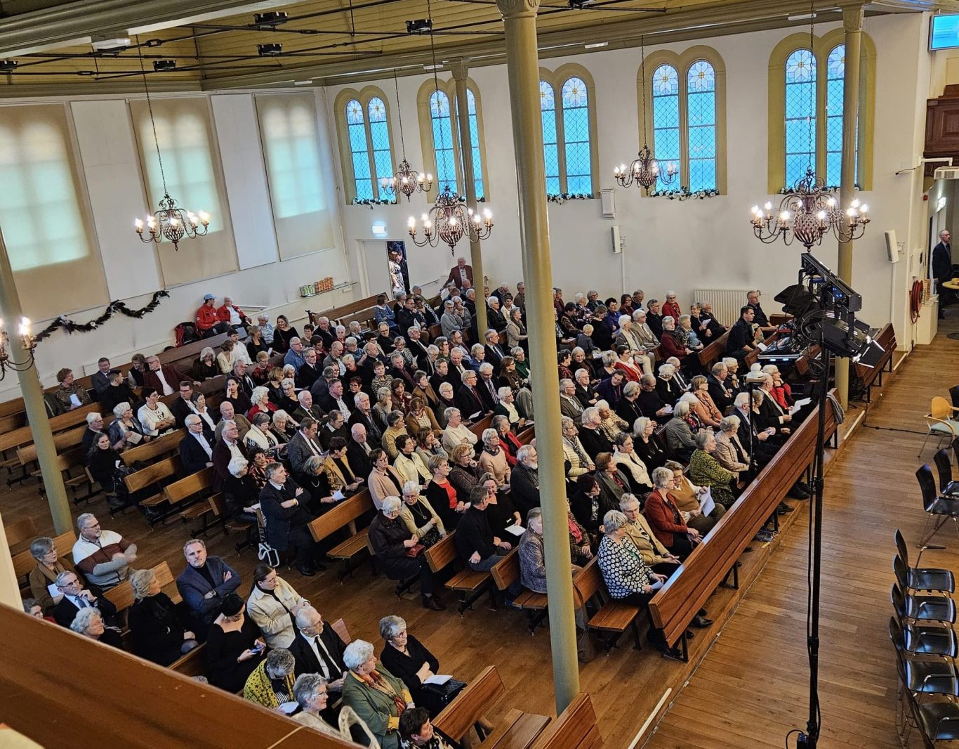 Na afloop van de dienst is er in de foyer ruimte om elkaar te ontmoeten en door te praten onder het genot van koffie of thee met een broodje.
